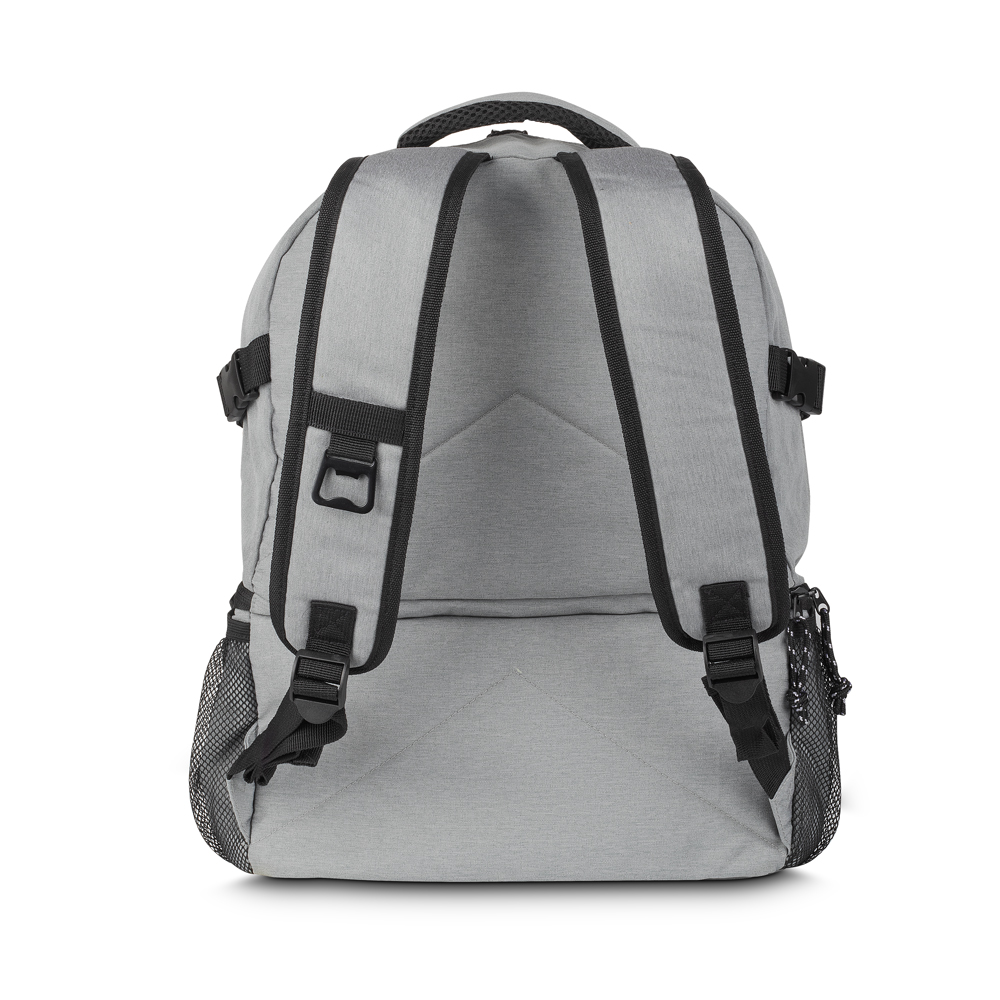 Mochila com compartimento térmico em tecido poliéster 300D e interior em PEVA. Parte externa: Dois bolsos laterais. Bolso frontal Alça de mão e ombro acolchoado. Parte interna: Compartimento térmico ideal para transportar alimentos. Capacidade do interior térmico soldado é de 8,5L Compartimento na parte superior com zíper. Compartimento superior acolchoado para notebooks de 13″, com volume de até 23L Compartimento inferior térmico soldado com capacidade de 8,5L 35% OFF NA PLAQUINHA! Entre em contato com seu consultor para adicionar no pedido a plaquinha. *Desconto válido somente na compra dos itens: Mochilas, Necessaires e Bolsas Térmicas. Ver plaquinhas