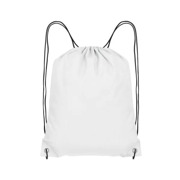 Mochila sacola branca em Nylon 190D com alças ajustáveis.