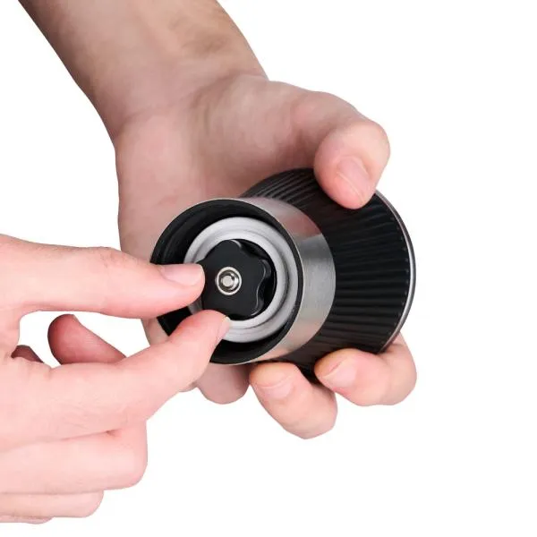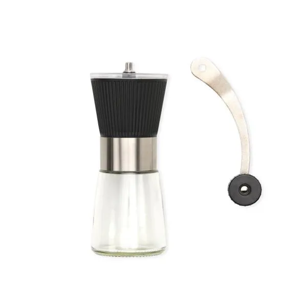 Moedor manual para café confeccionado em vidro e aço Inox.