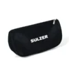 Confeccionada em microfibra preto, possui forro em nylon e zíper superior;