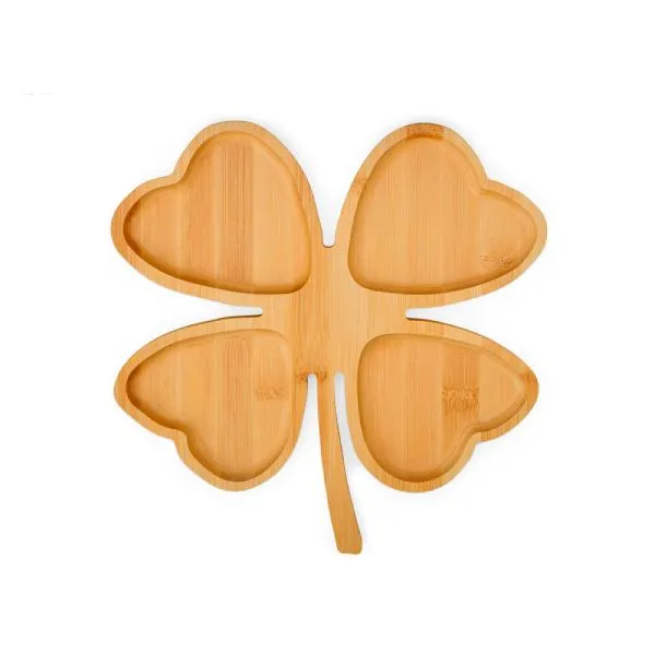Conta com petisqueira formato de trevo em bambu; Espaço para garrafa com palha (NÃO ACOMPANHA GARRAFA).