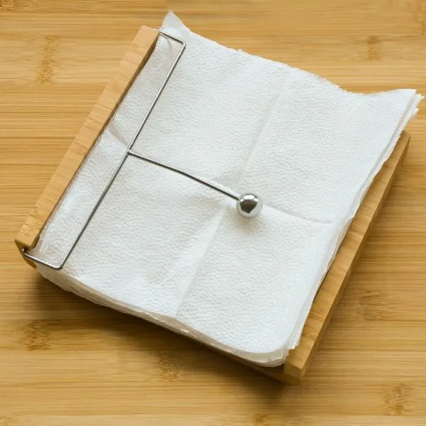 Conta com uma esfera em metal cromado, para segurar os guardanapos.