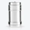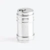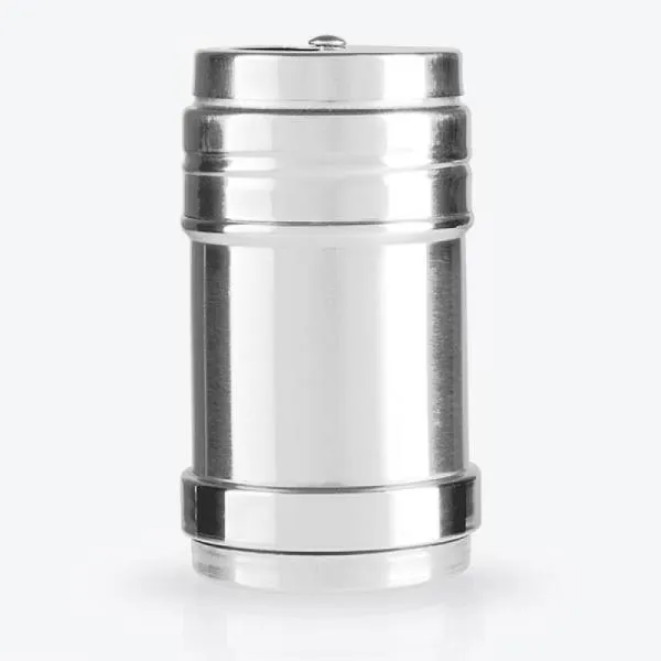 Pote de aço inox para tempero com tampa giratória e tamanho de 8cm x 4cm.