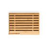 Tábua para pão em bambu com faca em aço inox. Grelha removível para fácil limpeza de migalhas. Fornecido em caixa presente de papel kraft reciclado. Certificação EU Food Grade. A cor e o resultado da impressão nos materiais naturais pode variar entre produtos. 350 x 250 x 40 mm