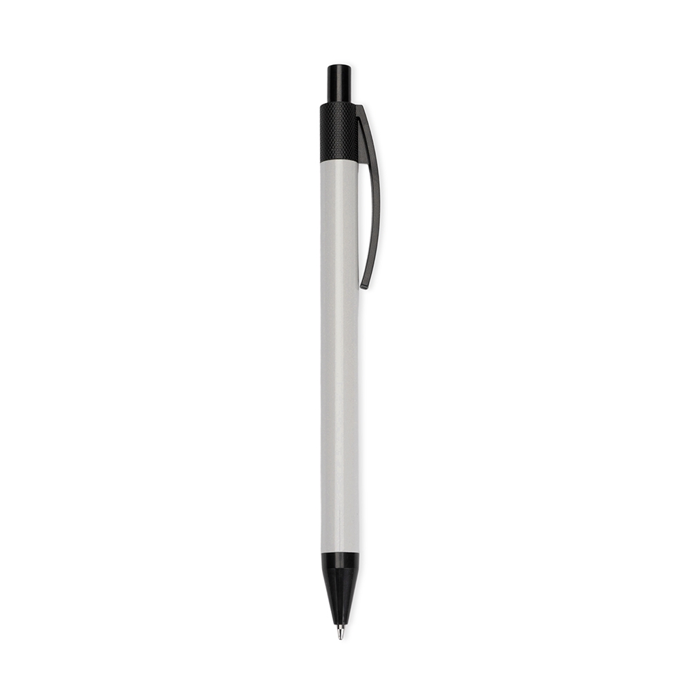 Caneta de corpo metálico, ponteira e clip em plástico e acionamento por clique. Possui carga esferográfica azul de 1.0mm, proporcionando uma pegada leve para uma escrita precisa.