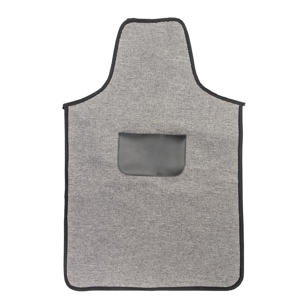 Avental resistente à água confeccionado em poliéster mesclado com PVC. Possui bolso com revestimento interno em bidim e alças para pescoço e cintura ajustáveis.