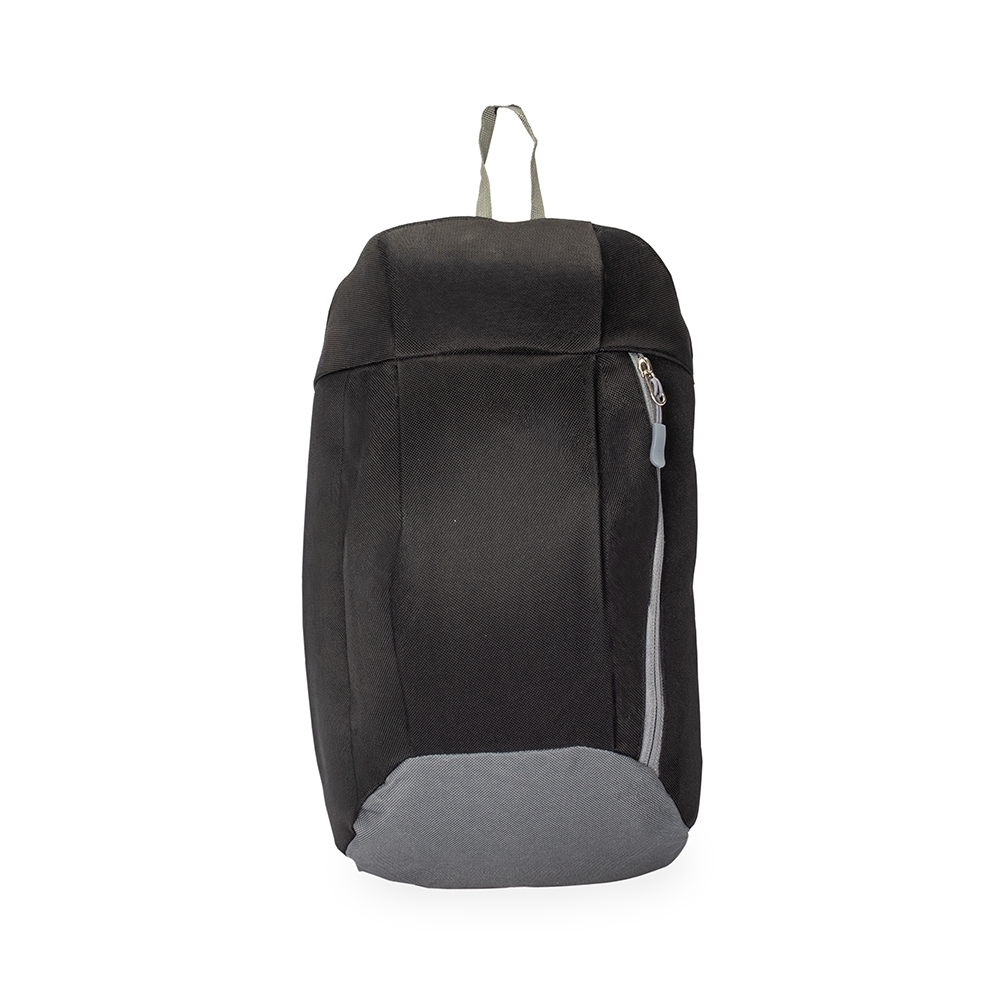 Mochila feita em poliéster impermeável com fechamento em zíper e capacidade para até 9 litros. Possui compartimento interno, um bolso frontal com fechamento em zíper, alça superior em nylon e dois pares de alças traseiras ajustáveis para as costas.