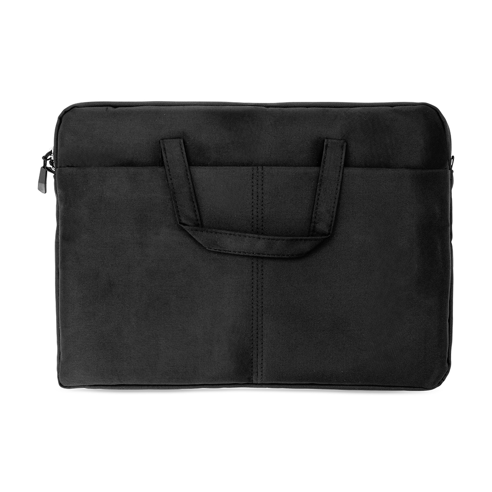 Pasta para notebook em poliéster impermeável, fechamento em zíper e capacidade para dispositivos de até 15,6 polegadas. Possui compartimento principal acolchoado e bolso frontal. Conta ainda com duas alças de mão, duas abas menores para encaixe de alça transversal removível e faixa posterior para acoplar em malas. Acompanha alça transversal ajustável.