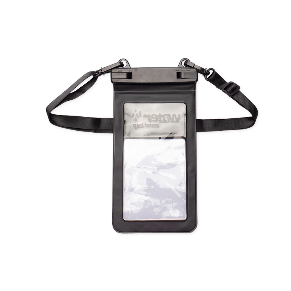 Capa impermeável com certificação IPX8 compatível com diversos modelos de smartphones. Possui área sensível ao toque que permite o uso livre do aparelho, fechamento com travas laterais e cordão de nylon ajustável com engate plástico.